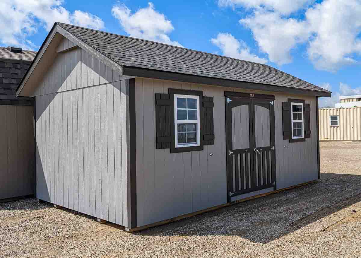 - Two 24×36″ windows with grilles and shutters