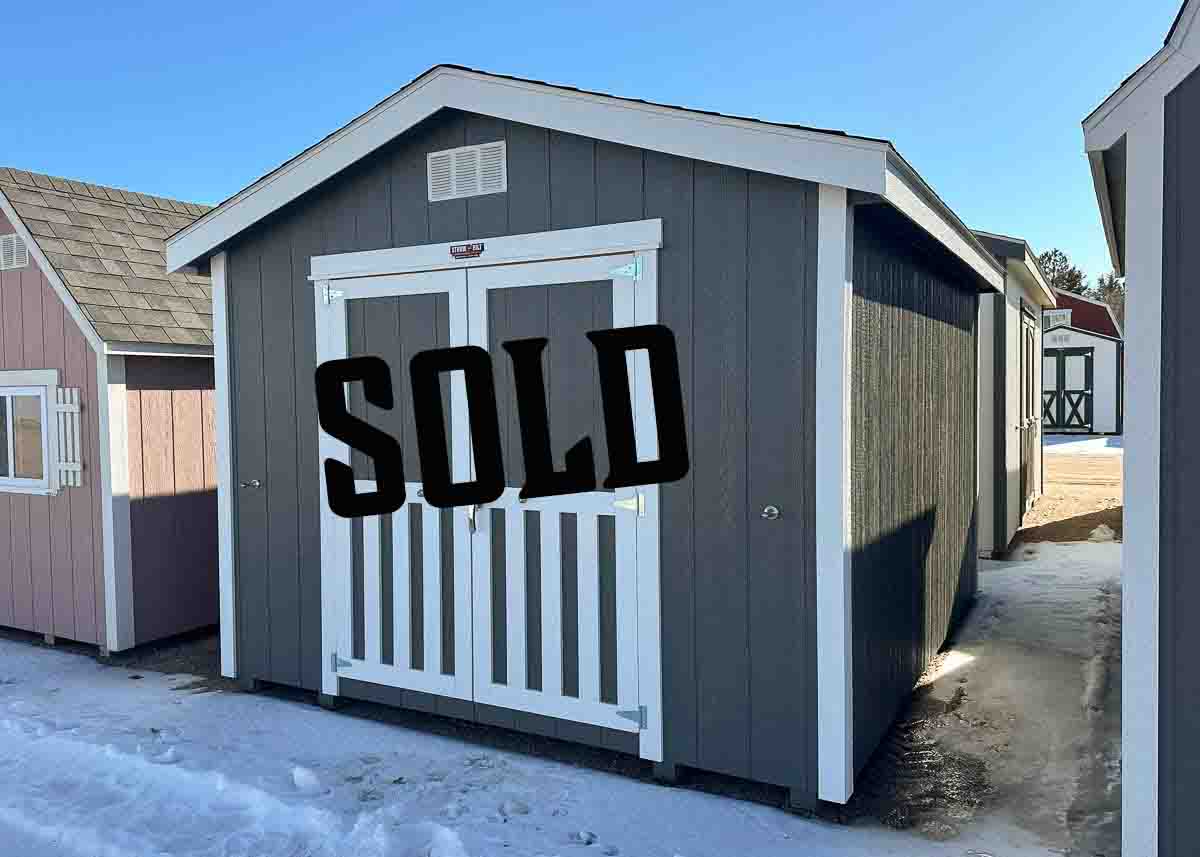 Siding: Taupe; Trim: White; Roof: Driftwood; Price: $11,795 + tax Free delivery within 125 miles of Hutchinson (plus applicable out-of-state permit and pilot fees) Rent-to-Own (36 months) approx. $519/mo. Quality features include: 7’ walls with studs on 16" centers Laminated shingles 4' Inset porch Two lofts with railings and stairs/ladder Steel...