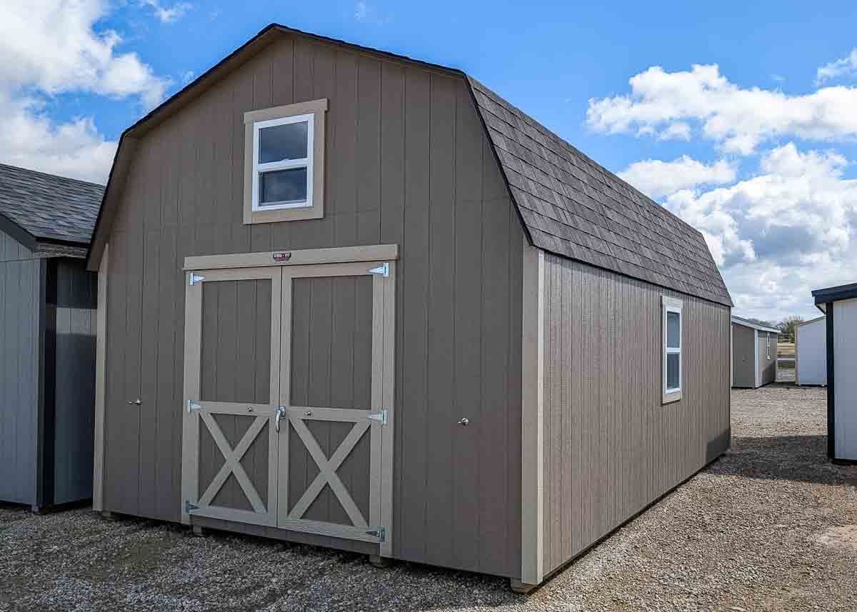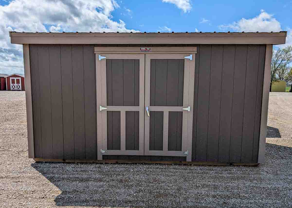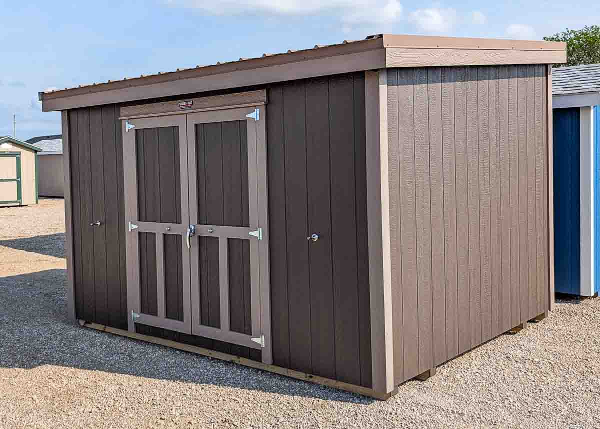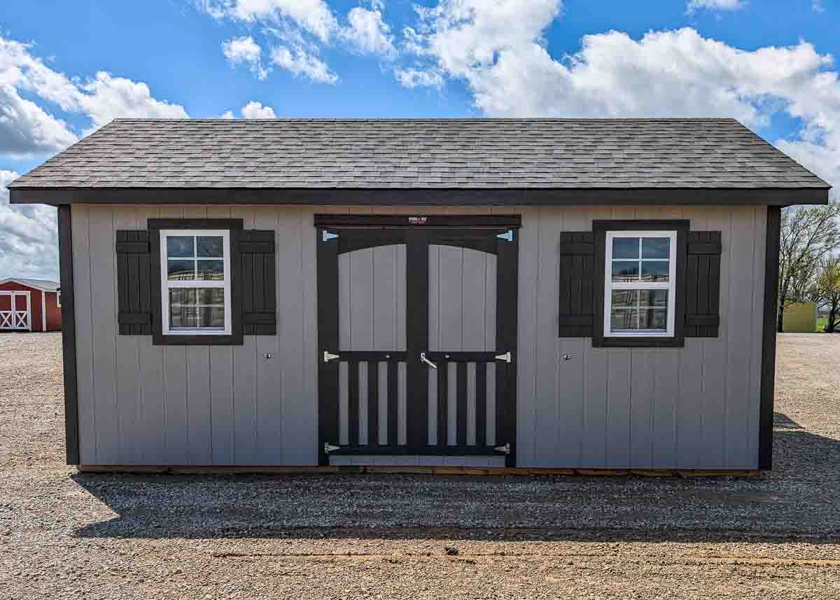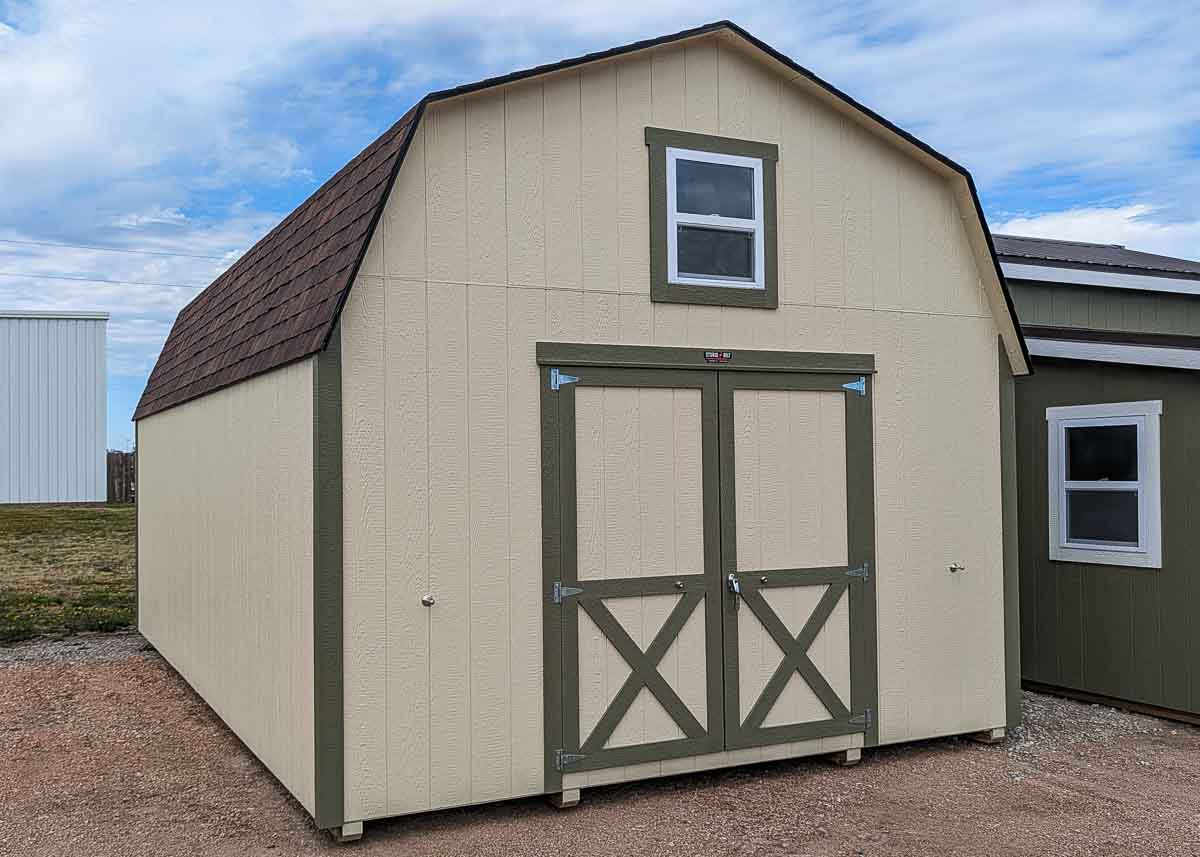 Siding: Blue;Trim: White;Roof: Sierra Gray; Price: $2975 + taxFree delivery within 65 miles of Hutchinson Rent-to-Own (36 months) approx. $131/mo. Quality features include: 7’ walls with studs 16" on center Laminated shingles 35.5"x6' door with magnetic catch Two wall vents To reserve this building please complete the following: [gravityform id="11" title="false" description="false" field_values="Name=#2C25798AN, 8x10...