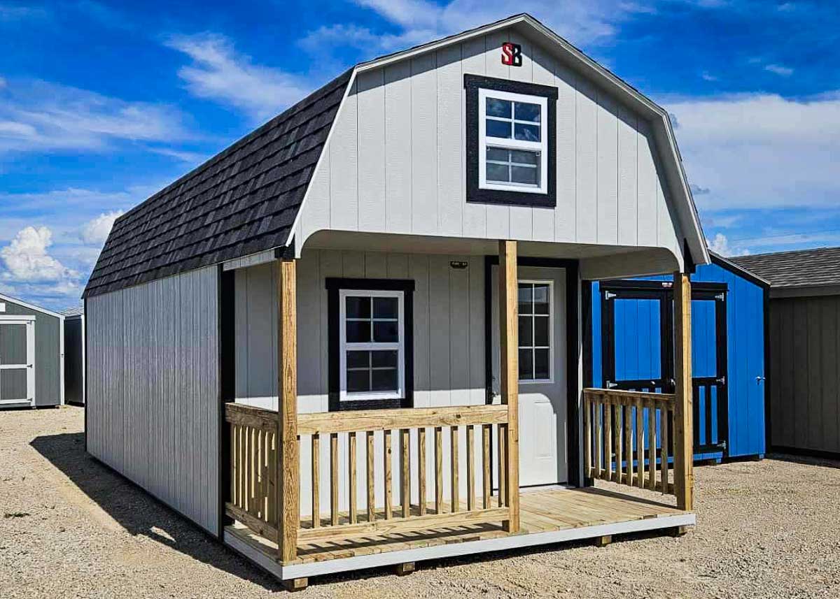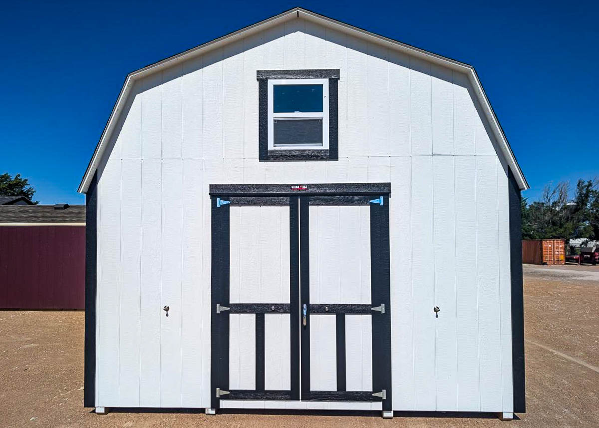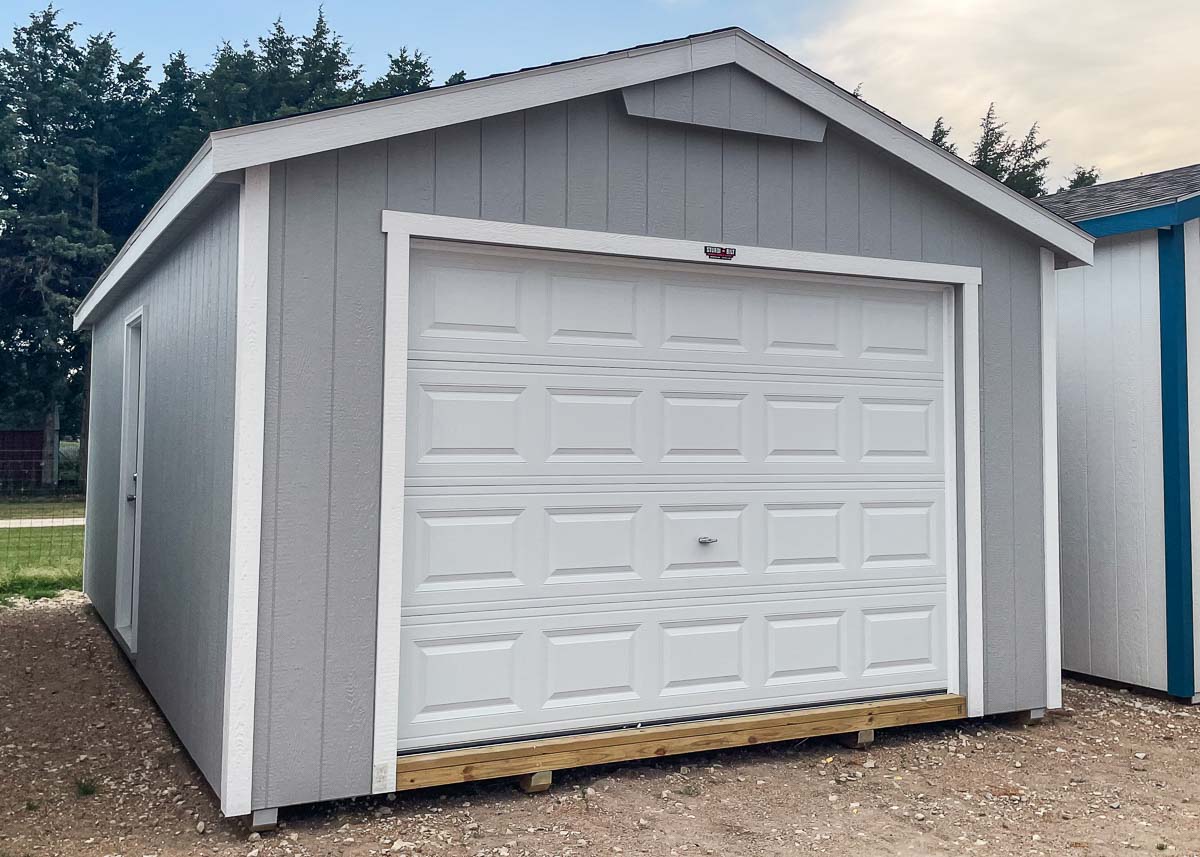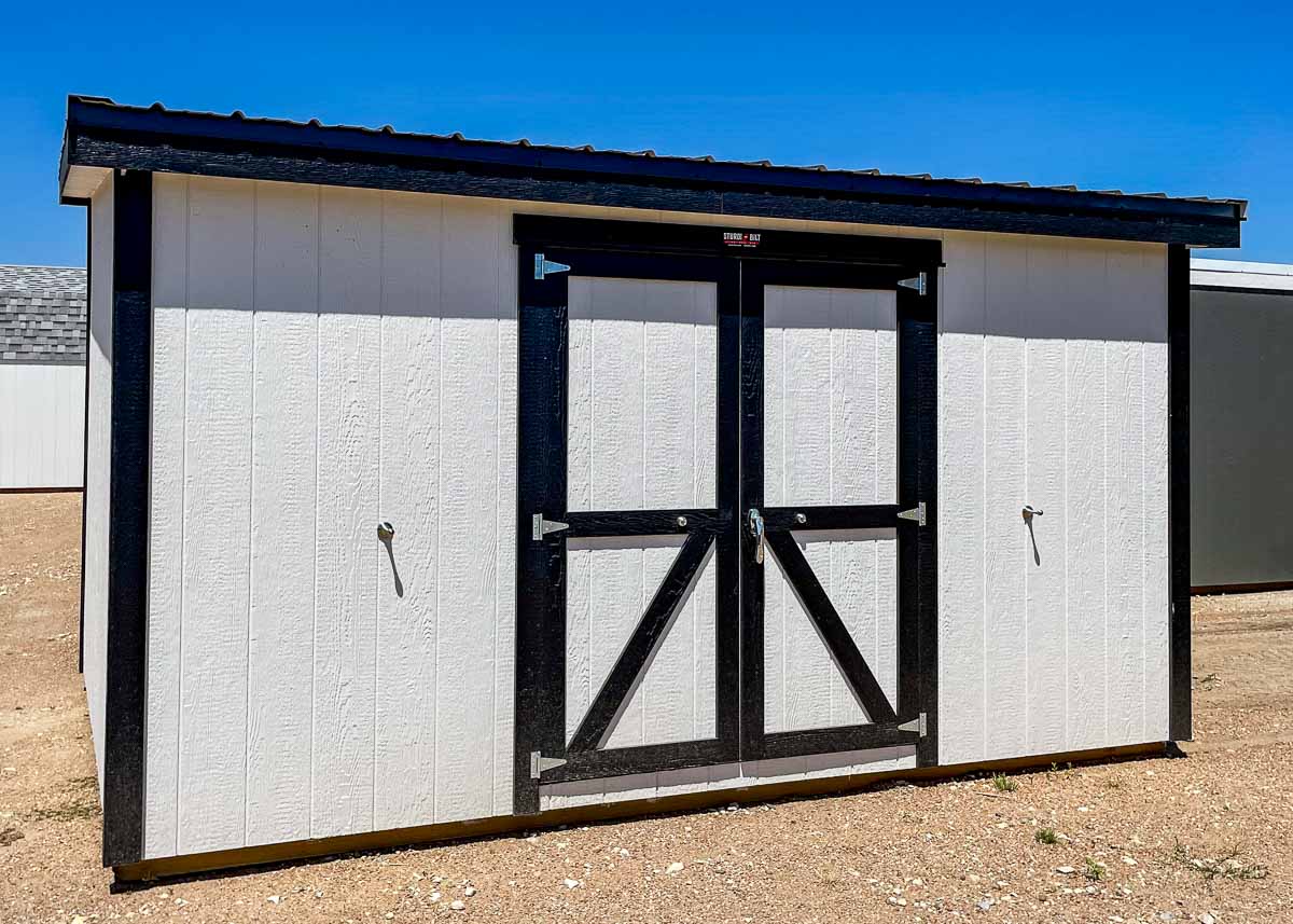 Siding: Blue; Trim: Black; Roof: Black; Price: $5495 + tax Free delivery within 65 miles of Hutchinson Rent-to-Own (36 months) approx. $242/mo. Quality features include: 7’ walls with studs on 16" centers Laminated shingles 6'x6'5" doors with magnetic catches Two wall vents One roof vent To reserve this building please complete the...