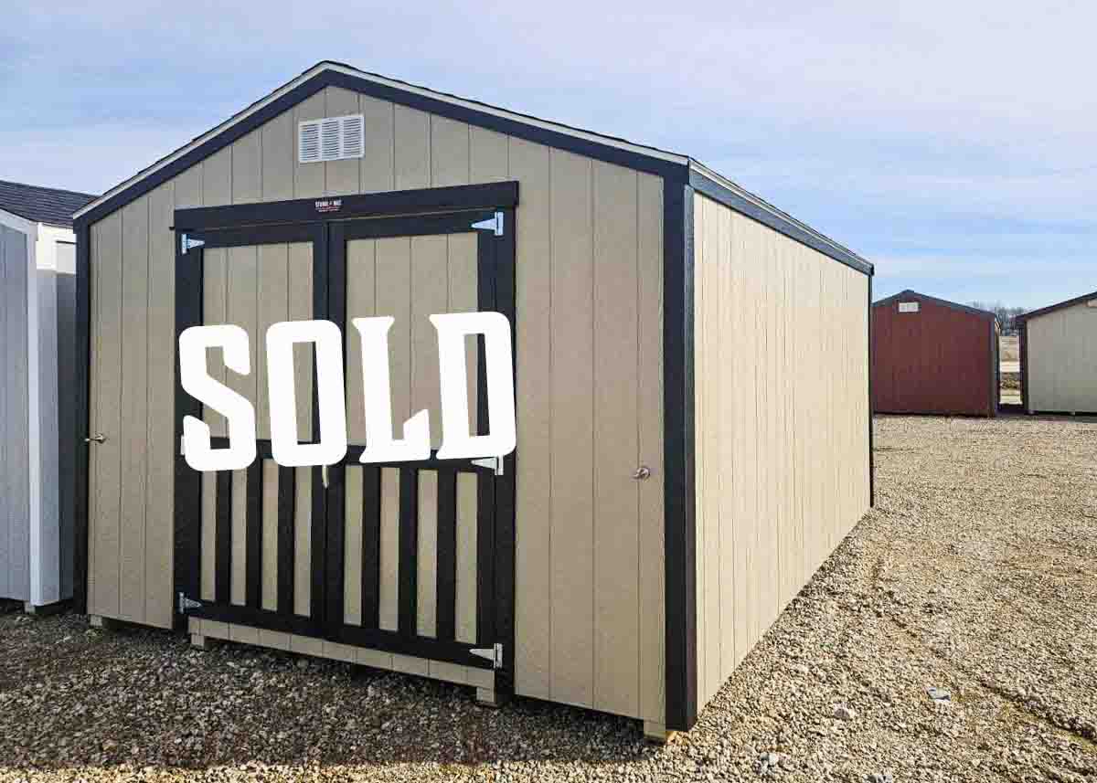 Siding: White; Trim: Black; Roof: Williamsburg Gray; Price: $9763 less discount = $9263 + tax Free delivery within 65 miles of Hutchinson Rent-to-Own (36 months) approx. $408/mo. Quality features include: 8’ walls with studs 16" on center Laminated shingles 5’x6’5" doors with magnetic catches Two 24x36" windows with grilles and shutters ...