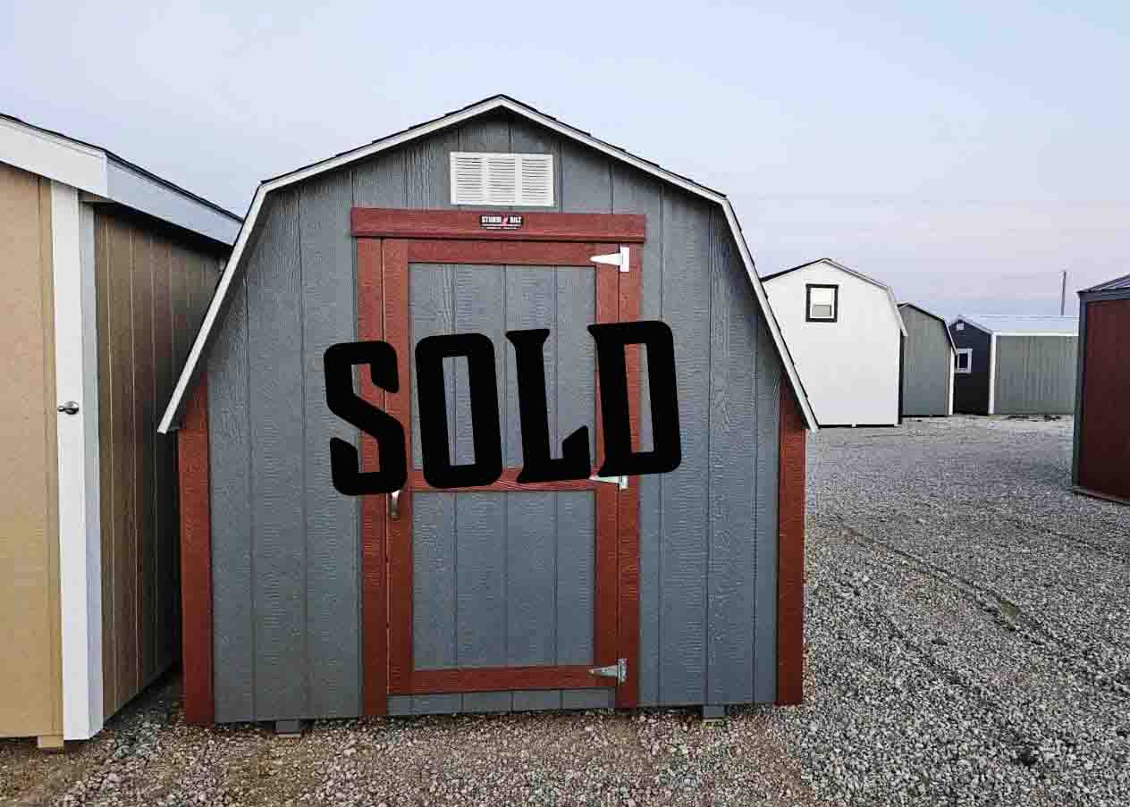 Siding: Red; Trim: Black; Roof: Williamsburg Gray; Price: $11,657 less discount = $11,067 + tax Free delivery within 65 miles of Hutchinson Rent-to-Own (36 months) approx. $487/mo. Quality features include: 7’ walls with studs on 16" centers Laminated shingles 5'x6'5" doors with magnetic catches Full loft with stairs & railings One...