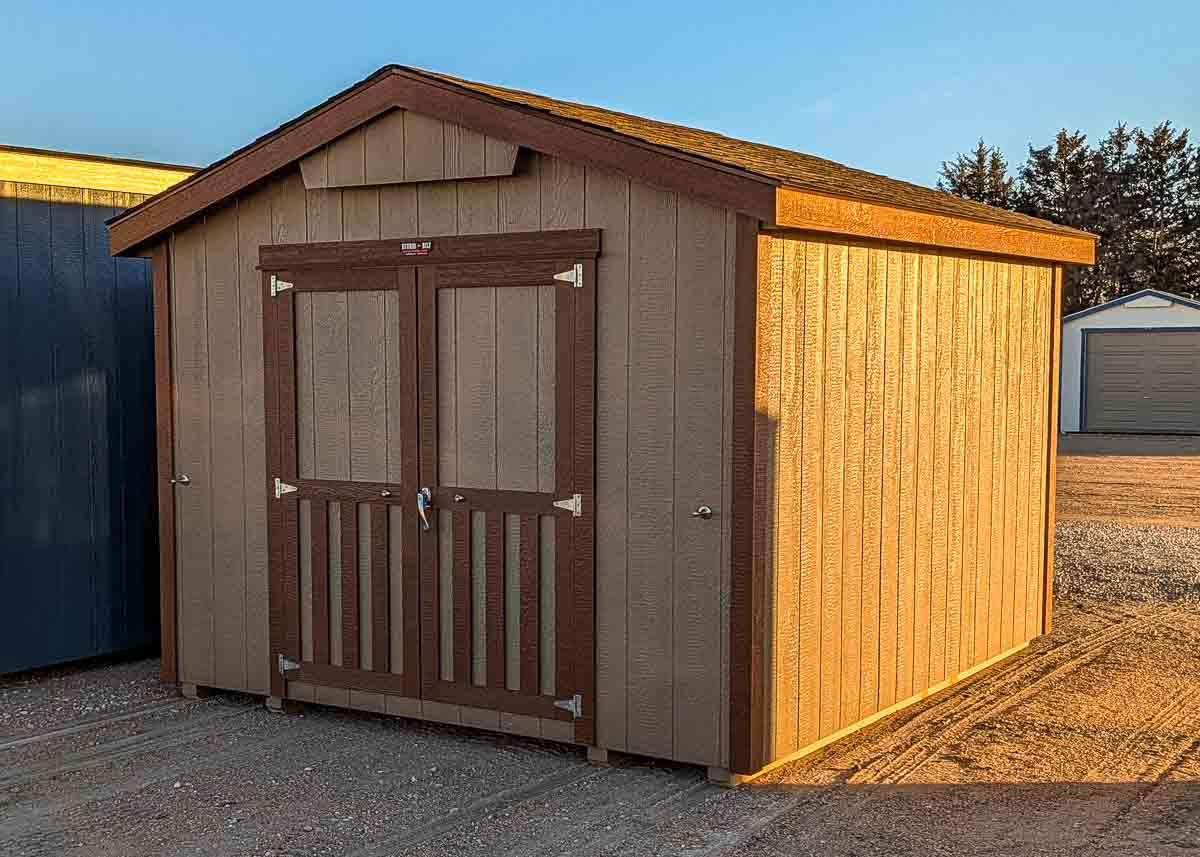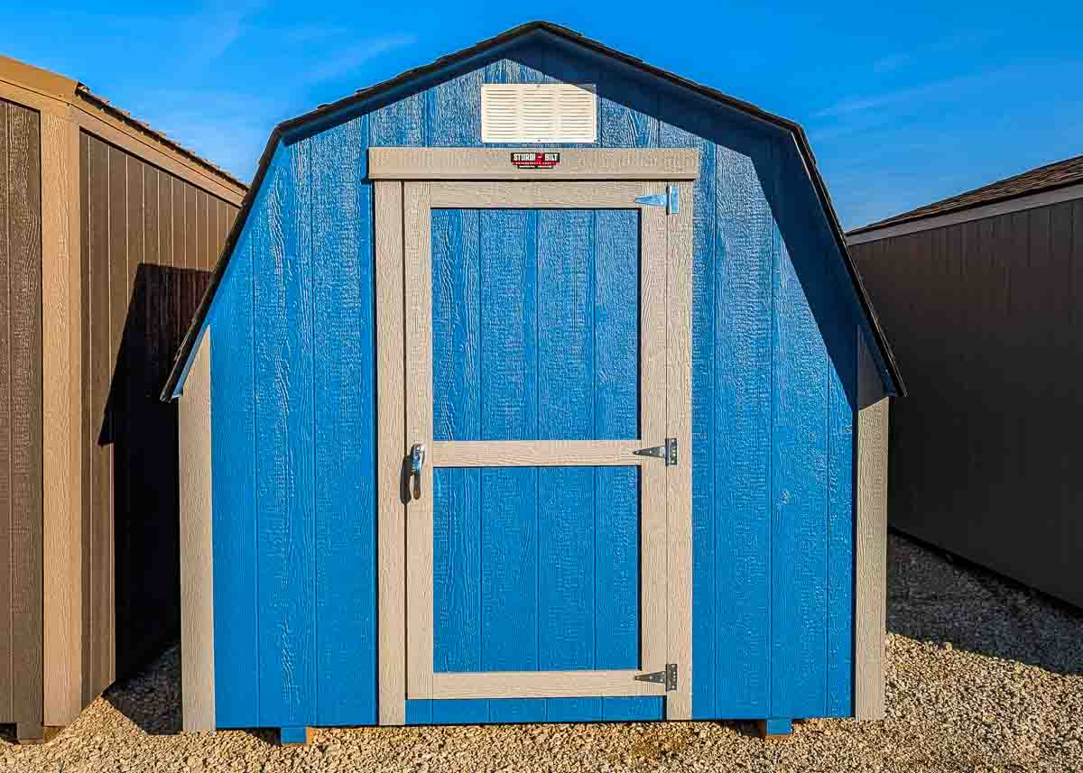 Siding: Blue; Trim: Pewter; Roof: Williamsburg; Price: $2425 + tax Free delivery within 65 miles of Parsons (Plus applicable out-of-state permit & pilot fees) Rent-to-Own (36 months) approx. $107/mo. Quality features include: 4’ walls with studs 24" on center Laminated shingles 35.5"x6’ door Two wall vents To reserve this building please complete...