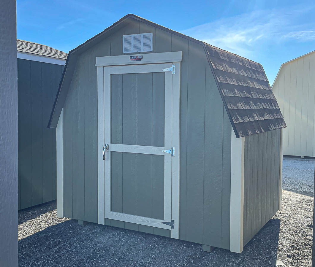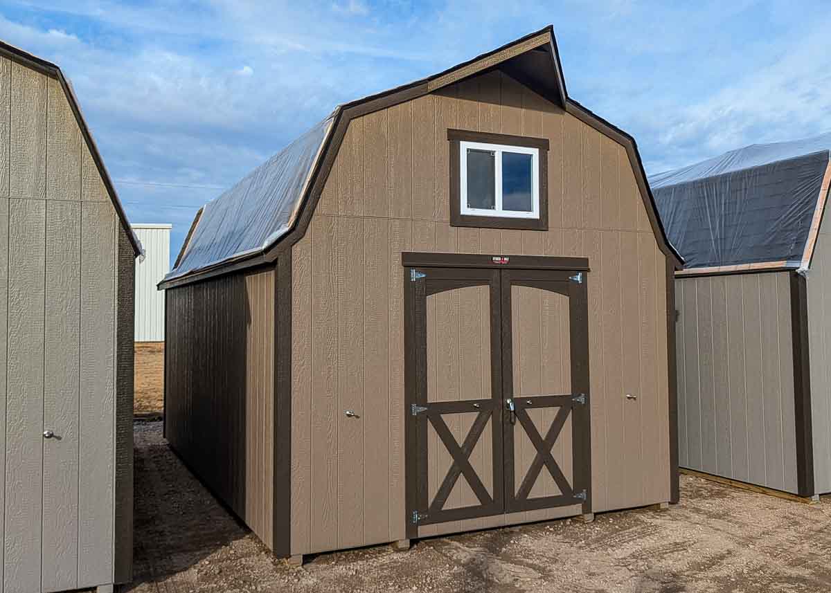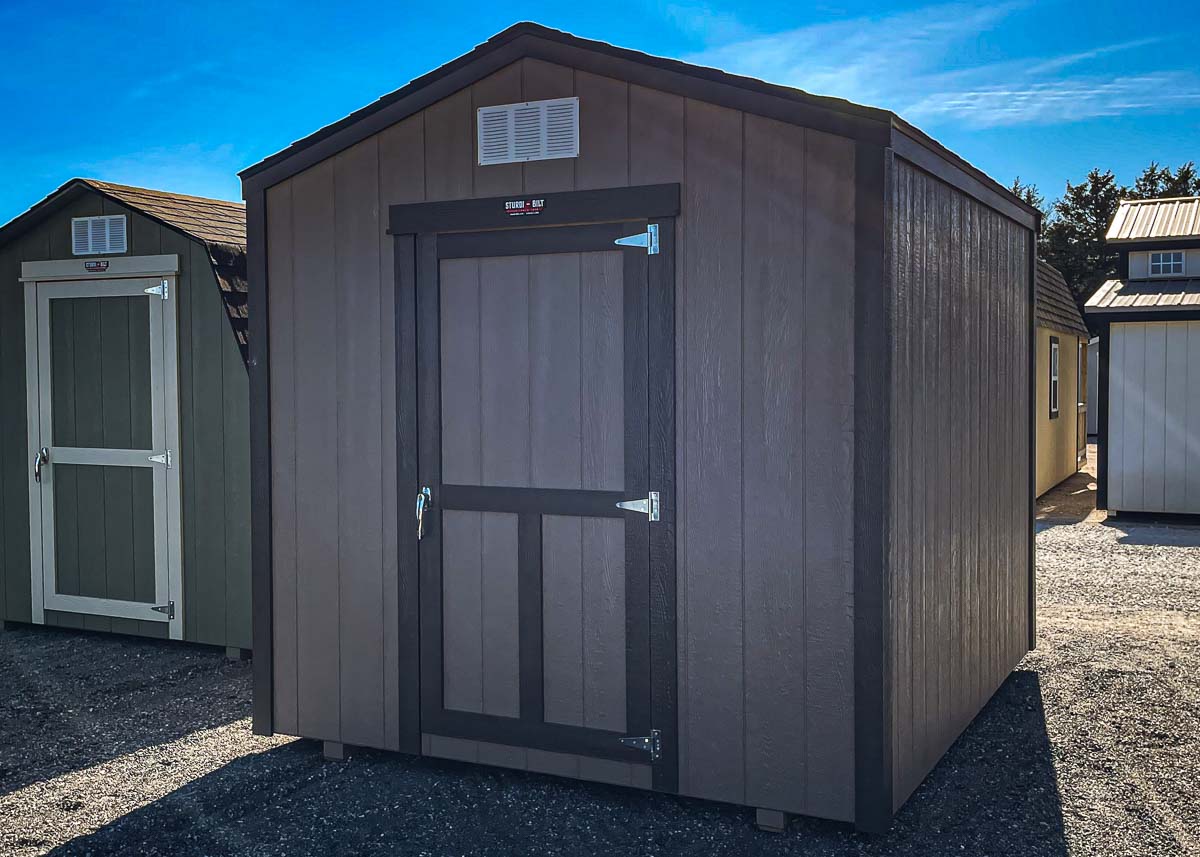 Siding: Pewter;Trim:  Coffee;Roof:  Black; Price:  $4490 + taxFree delivery within 125 miles of Hutchinson (plus applicable out-of-state permit & pilot fees)Rent-to-Own (36 months) approx. $198/mo. Quality features include: 7’ walls with studs 16" on center Laminate Shingles 5'x6' doors Two box vents     To reserve this building please complete the following: [gravityform id="11"...