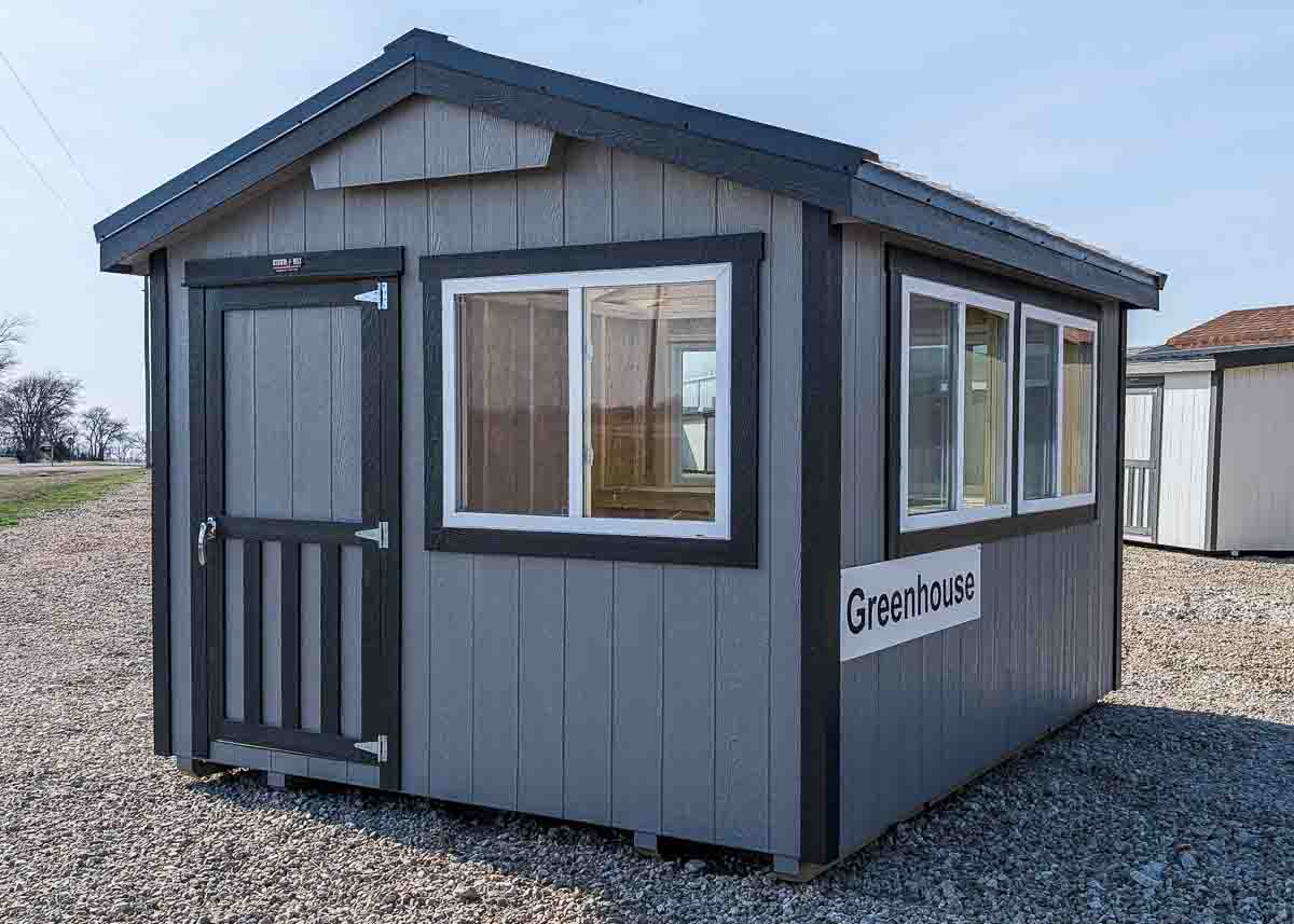 Siding: Pewter;Trim:  Black;Roof:  Black; Price:  $4569 + taxFree delivery within 65 miles of Hutchinson Rent-to-Own (36 months) approx. $202/mo. Quality features include: 7’ walls with studs 16" on center Laminate Shingles 5'x6.5' double doors One 24"x36" window One workbench One shelf Two box vents     To reserve this building please complete the following: [gravityform id="11" title="false" description="false" field_values="Name=#3D25688AN,...
