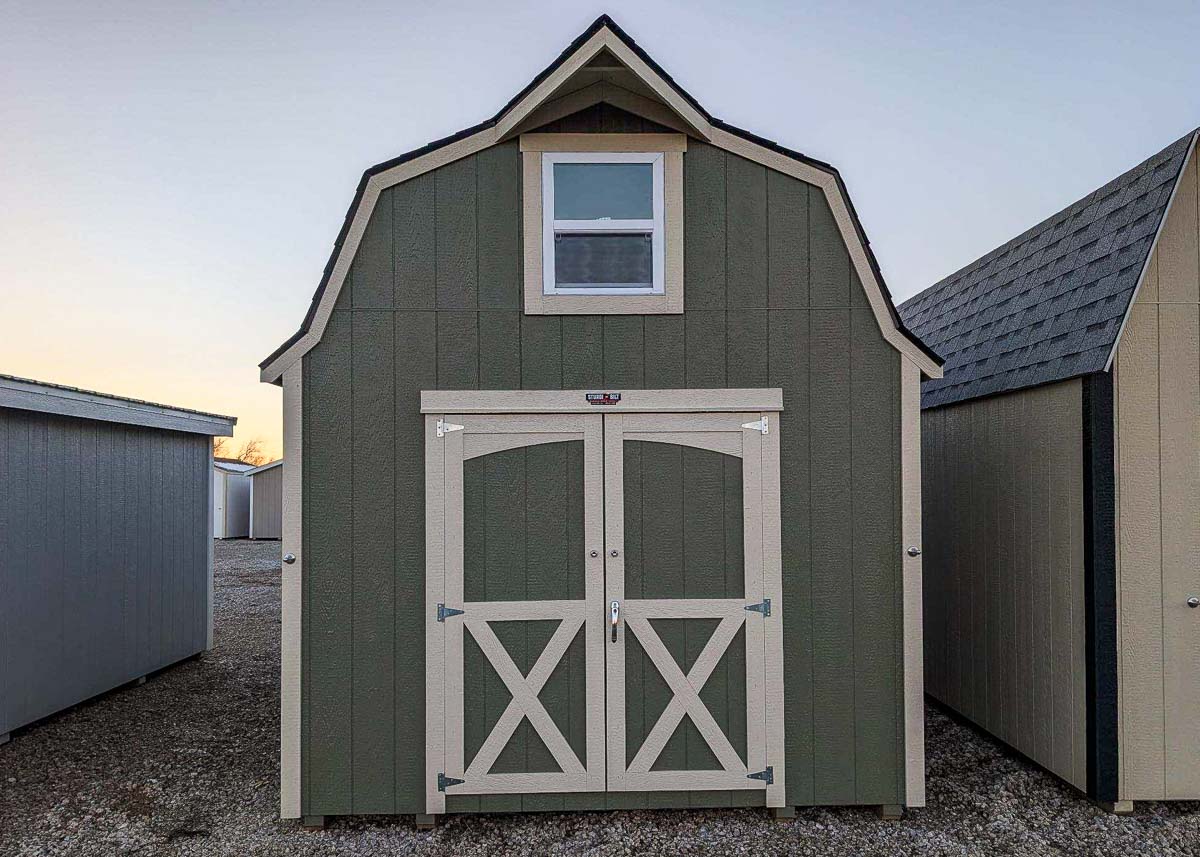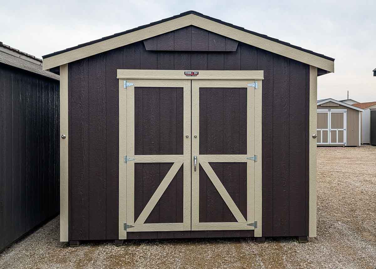Siding: Gray;Trim: Charcoal;Roof: Black; Price: $10,814 + taxFree delivery within 65 miles of Parsons (Plus applicable out-of-state permit & pilot fees)Rent-to-Own (36 months) approx. $476/mo. Quality features include: 8’ walls with studs 16" on center Laminate shingles Two car ramps One steel walk door with half glass 9 lite 9x7 #2250 black...